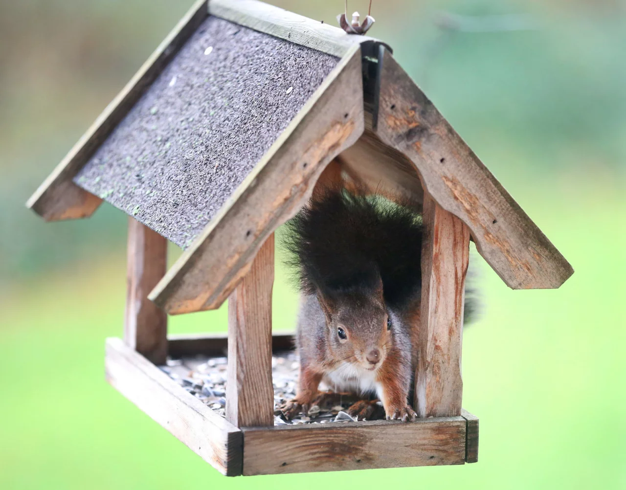„Unterstützen können Gartenbesitzer Eichhörnchen auch mit großen Vogelfutterhäuschen, in denen auch Eichhörnchen Platz haben", erklärt Belka. „Wichtig ist, dass Katzen nicht an das Häuschen kommen und die Tiere Ruhe vor Menschen haben." Angeboten werden häufig auch spezielle Futterhäuschen für Nager, doch davon rät Belka ab. „Die sind gefährlich, weil oft die Klappen zu schwer sind und Gliedmaßen abtrennen. Auch Acrylglas ist schlecht, weil die Nager daran nicht klettern können." Zudem sollten Gartenbesitzer Holzlatten in Wasserquellen wie Regentonnen stellen, damit die Tiere nicht ertrinken.