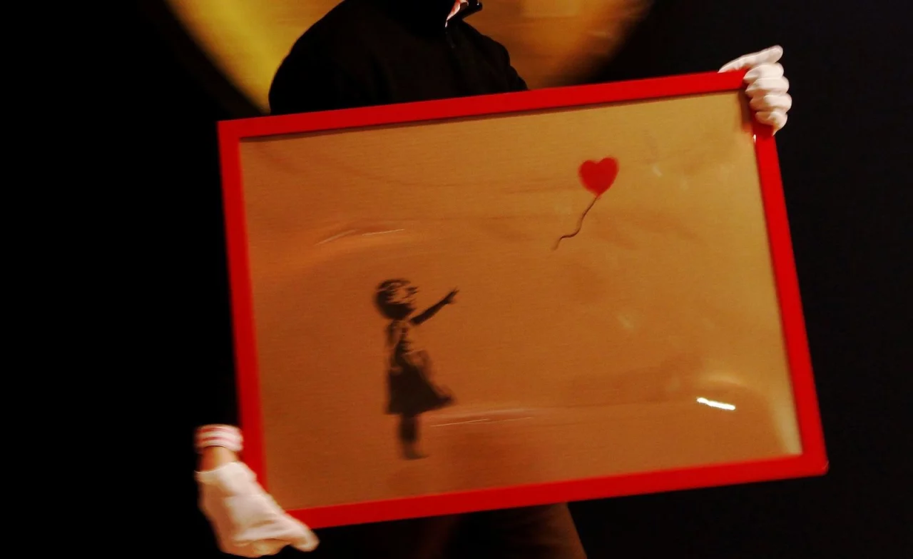London (AFP). Ein Werk des weltbekannten Streetart-Künstlers Banksy hat sich bei seiner Versteigerung selbst zerstört: Kaum war das Bild "Girl with Balloon" am Freitagabend bei Sotheby's in London für einen Rekordpreis von umgerechnet 1,2 Millionen Euro versteigert worden, schaltete sich ein im Rahmen versteckter Schredder ein und zerschnitt es.