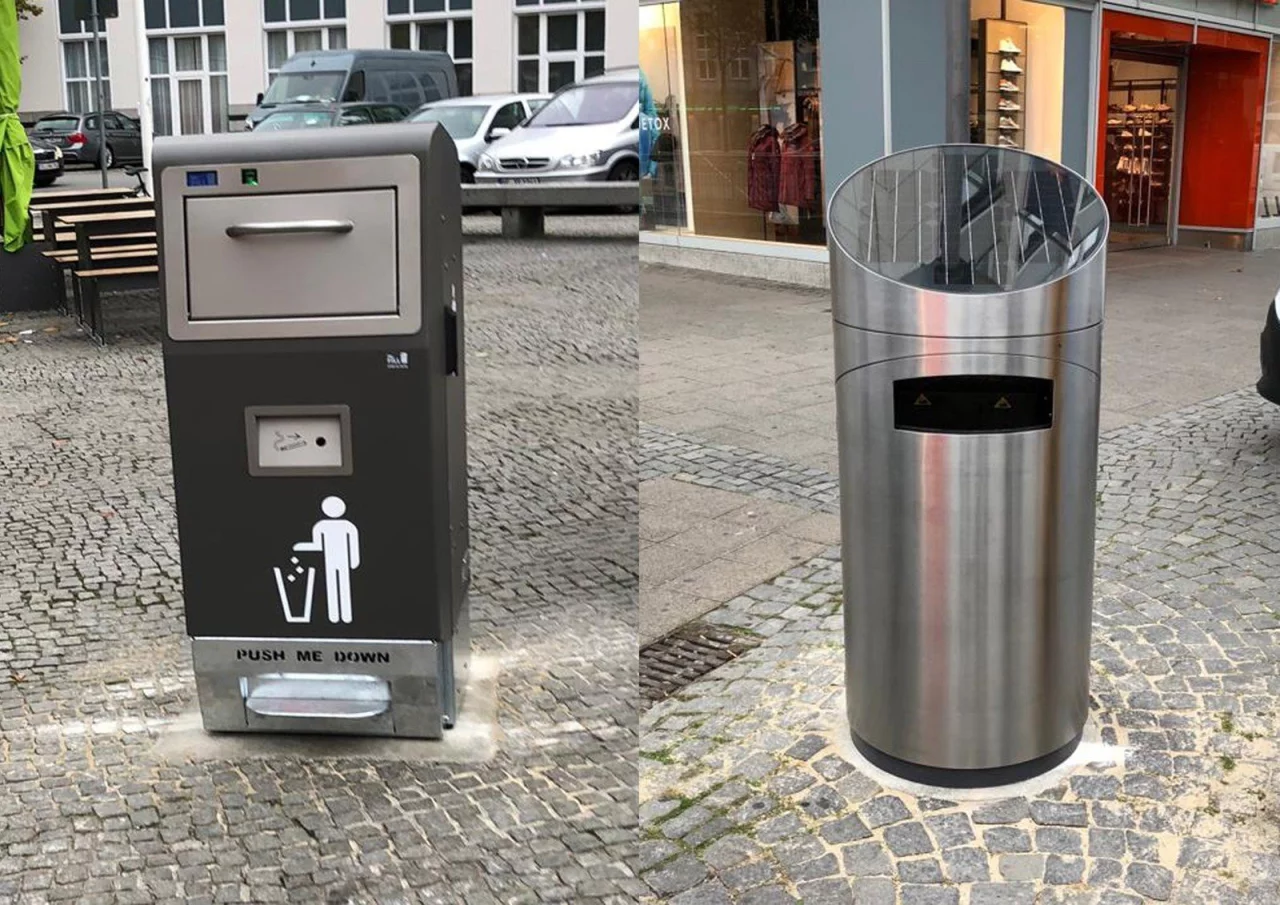 Sie sind technisch so ausgestattet, dass der eingeworfene Müll in regelmäßigen Abständen zusammengepresst wird. Einweg-To-go-Becher, Plastikflaschen und andere Verpackungen verkleinern sich dadurch auf einen Bruchteil und die Mülleimer können bis zum Zehnfachen des unverpressten Abfalls aufnehmen.