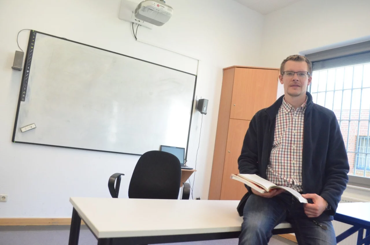 Ein Bekannter, der als Lehrer an der JVA unterrichtete, habe ihm dann von einer offenen Stelle erzählt. Überlegt, beworben, genommen. „Das war vor fünf Jahren. Seitdem bin ich hier", sagt er. Mit dem Gefängnis habe er vorher nie Berührungspunkte gehabt, nicht einmal gewusst, dass es dort auch Lehrer gibt: „Und jetzt bin ich einer davon."
