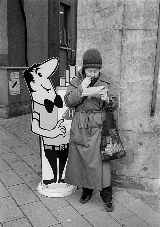 „Ich drück mich auf meine Weise aus", beschreibt er sein Arbeitscredo und seine Arbeitsweise? „Der Hauptteil besteht im Flanieren, im Ablatschen von Schuhsohlen und im Abbau von Frust. Denn wie oft ist man erfolglos unterwegs; nicht schnell genug gewesen bei einer Situation, den entscheidenden Augenblick nicht erwischt. Oder die Kamera falsch eingestellt, damals wurden die analogen Nikons noch komplett manuell bedient".