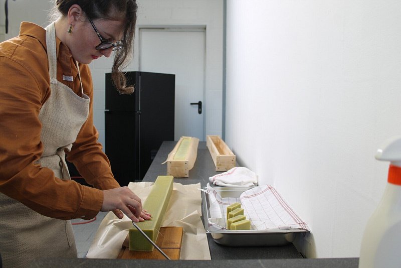 So entstand die Idee zu einer eigenen Seifenmanufaktur. „Und wo könnte man da besser gründen als Zuhause im Weserbergland und in der Nähe der Duftstadt Holzminden", sagt Lena-Lynn Naraschkéwitz. Die Rezeptur für ihre Seife hat sie selbst entwickelt. „Sie ist handgesiedet, größtenteils mit Rapsöl aus dem Weserbergland, beduftet mit einer komplexen Komposition aus ätherischen Ölen." Anders als in der industriellen Fertigung darf die Seife bei ihr langsam reifen. Sie wird in hölzerne Formen gegossen und trocknet bis zu sechs Wochen lang.