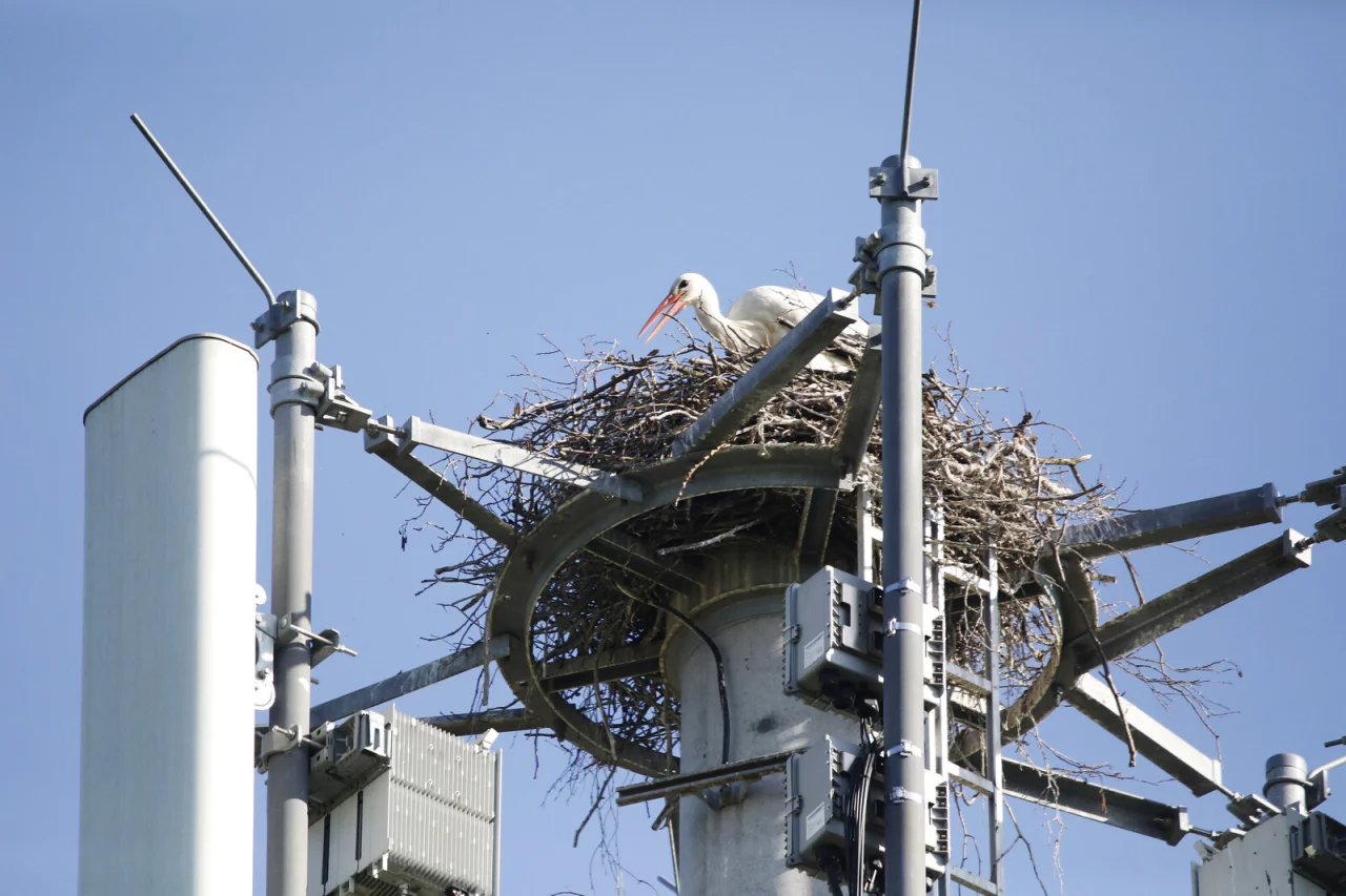 Die Telekom-Tochterfirma Deutsche Funkturm (DFMG), die den Mast Ende 2019 gebaut und Mitte 2020 in Betrieb genommen hat, nimmt Rücksicht auf die Vögel. „Während der Brutzeit verschieben wir Wartungsarbeiten und besprechen gemeinsam mit der Naturschutzbehörde und den Storchenbeauftragten das weitere Vorgehen“, sagt Bruno Jacobfeuerborn, Vorsitzender der Geschäftsführung der DFMG. „So stellen wir sicher, dass weder die Mobilfunkversorgung, noch die Aufzucht des Nachwuchses gestört wird. Das sehen wir als Teil unserer ökologischen Verantwortung.“ Erst wenn die Störche im Laufe des Jahres ihr Nest verlassen haben, soll in Abstimmung mit den Behörden entschieden werden, ob der Horst zwischen den Mobilfunkantennen bleiben kann oder verlegt werden muss.