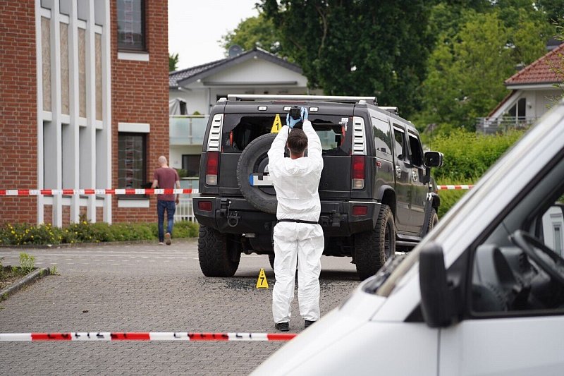 Noch in der Nacht habe man dann auf einem Parkplatz in der Hermannstraße an dem schweren Wagen mehrere Einschusslöcher entdeckt. Aufgrund der Sachlage wurde daraufhin in Zusammenarbeit mit der Polizei Herford und unter der Leitung von Kriminalhauptkommissar Markus Ickler die Mordkommission "Hermann" eingerichtet. Bis zum Sonntagnachmittag waren die Kriminalpolizei und die Spurensicherung vor Ort im Einsatz.