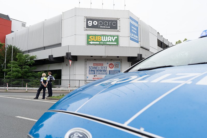 Auch vor dem GoParc ist die Spurensicherung der Polizei am Sonntagnachmittag aktiv. Vor dem Eingang der Diskothek werden deutliche Reifenspuren dokumentiert. Ob diese von einem starken Abbrems- oder Beschleunigungsvorgang stammen, können die Ermittler noch nicht sagen.