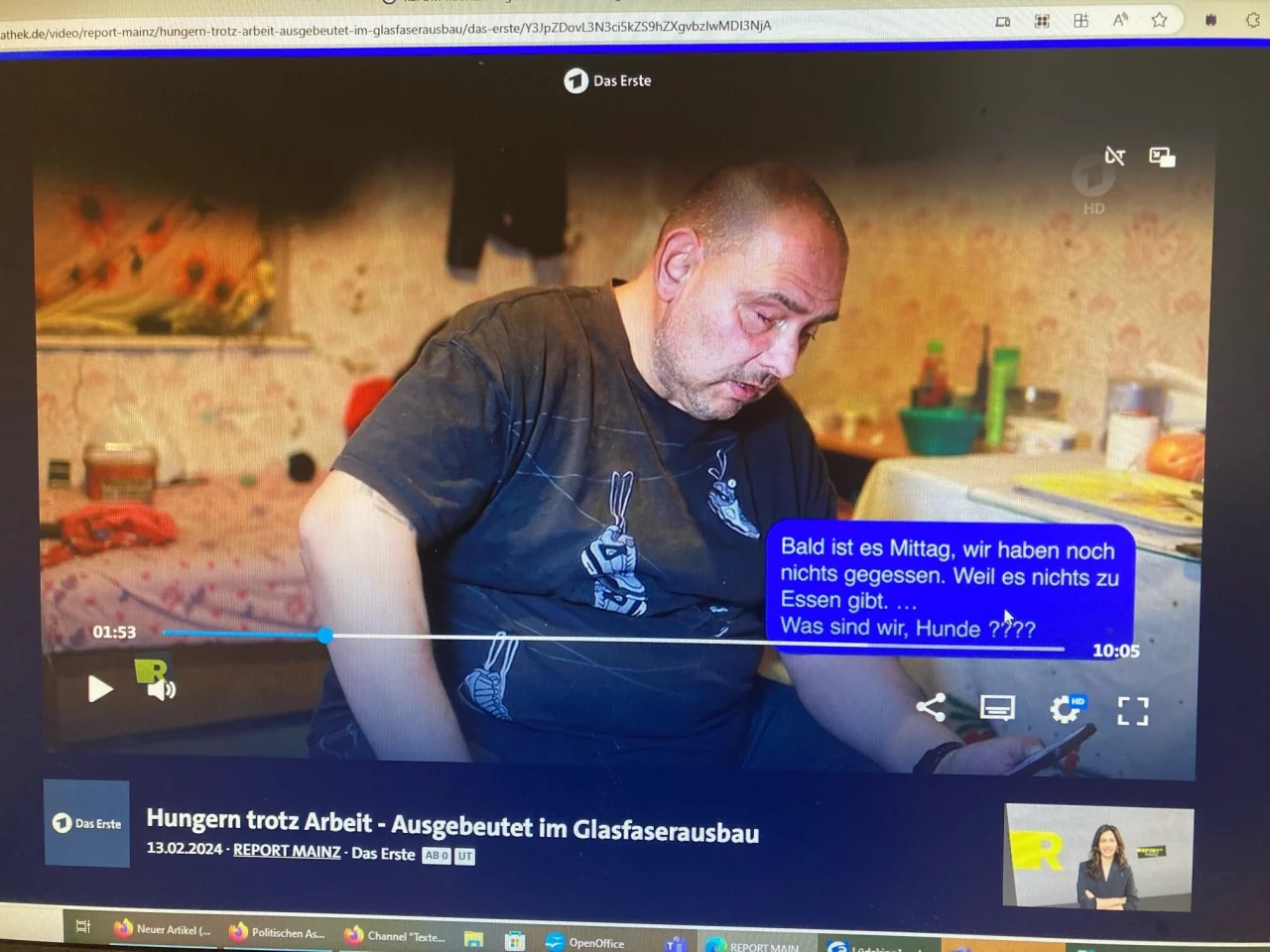 Der rund zehnminütige Beitrag ist online in der ARD-Mediathek abrufbar. Der Titel lautet: „Report Mainz Hungern trotz Arbeit - Ausgebeutet im Glasfaserausbau“.