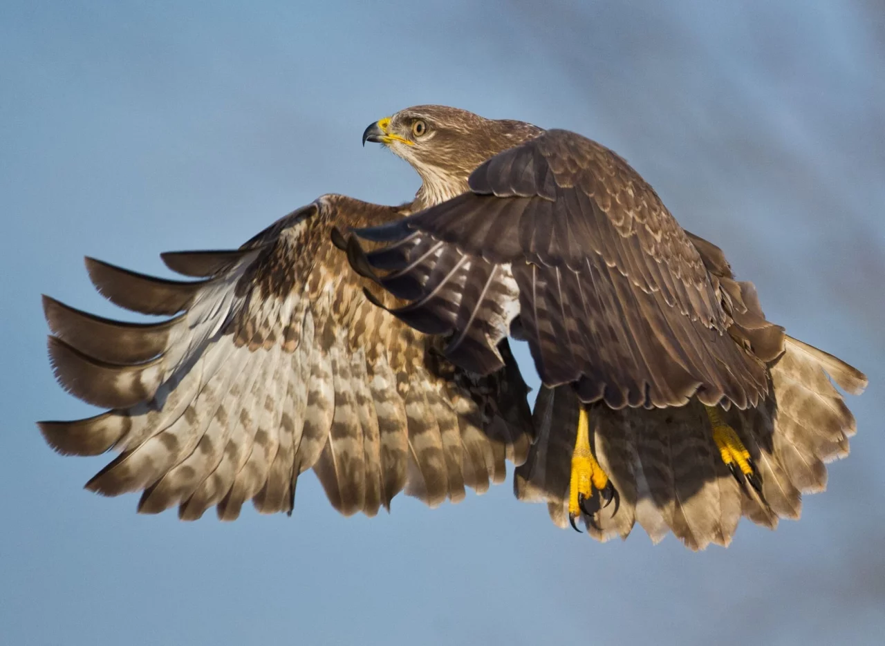 Federn so gestutzt, dass der Bussard flugunfähig ist