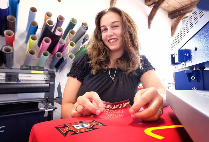 Weil Portugal seine Trikots nur für die drei Vorrunden-Spiele hat bedrucken lassen (auf jedes muss immer die Begegnung, das Datum und der Spielort gedruckt werden), musste mit dem Einzug ins Achtelfinale Nachschub her. Glück für Klaus Weckenbrock und sein Sportgeschäft in Harsewinkel. Denn die Portugiesen kamen zu ihm, um die Trikots nachbedrucken zu lassen.