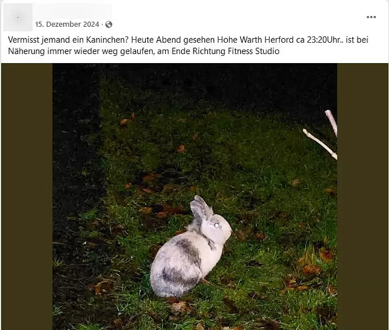 Bereits am 15. Dezember 2024 postet eine Facebook-Nutzerin ein Foto eines Kaninchens auf dem Rasen des Fitnessstudios. Darunter kommentiert jemand, dass die Tiere der angrenzenden freien christlichen Gemeinde „Lebendige Hoffnung“ gehören sollen. Auf NW-Nachfrage bestätigt die Gemeinde, dass sie derzeit kläre, ob es sich um ihre Tiere handelt. „Wir hatten mal Kaninchen, haben sie dann aber abgegeben“, so ein Gemeindesprecher. Warum dort nun wieder welche herumlaufen, sei unklar.