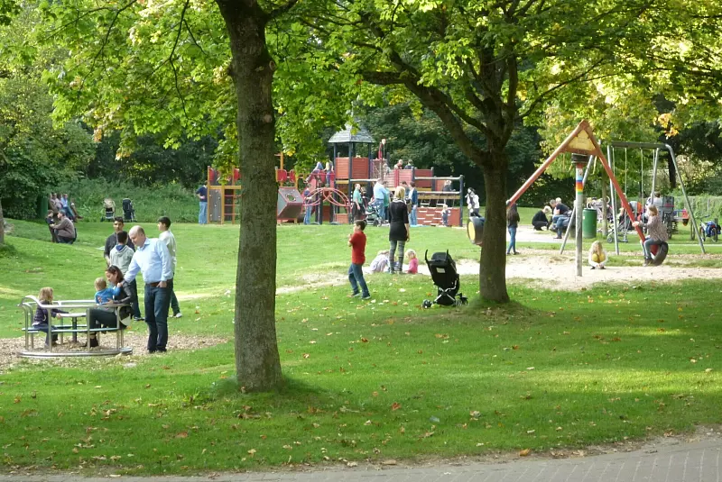 Über einen gesamten Park verteilt ist auch der Spielplatz im Mohnspark in Gütersloh. Ein hoher Rutschenturm, eine lange Seilbahn und eine große Kletterspinne sind die Hauptattraktionen. Daneben bietet der Spielplatz alles, was ein Spielplatz standardmäßig im Repertoire haben sollte.