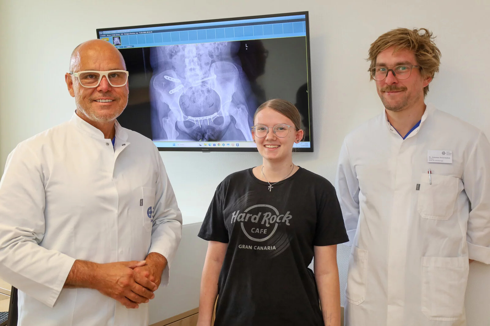 „Emily Meyer lag 30 Minuten später bereits im OP.“ Gemeinsam mit Oberarzt Johannes Dreischalück versorgt Mann in einer mehr als zweistündigen Notoperation die massiven Verletzungen der jungen Patientin. Dazu werden vorerst mehrere Fixateure gesetzt. „Die Schwere der Verletzungen erforderten einige weitere geplante Operationen in den nächsten Wochen“, beschreibt Dreischalück den weiteren Verlauf.