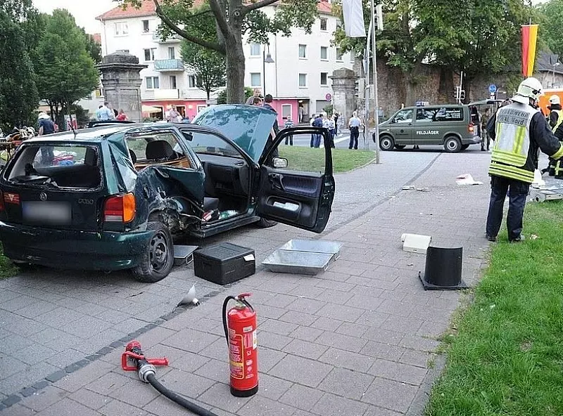 Paderborn (my). Schrecklicher Unfall in der Paderborner Innenstadt: Nach einem Zusammenstoß von zwei Personenwagen ist am Mittwochabend einer der beiden Wagen in eine Fußgängergruppe geschleudert worden. Dabei wurde nach ersten Erkenntnissen ein 21-jähriger britischer Soldat getötet. Drei Personen wurden schwer, drei weitere leicht verletzt. Einer der Schwerverletzten schwebt nach Auskunft der Polizei in Lebensgefahr.