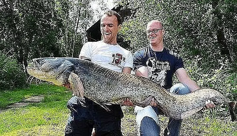 Und bis zu drei Meter lang. Mit seinen stattlichen 1,74 Metern bricht aber auch der Spenger Wels einen Rekord - zumindest am Hücker Moor: "Es ist deutlich der größte Fisch, den wir je hier am Haken gehabt haben."