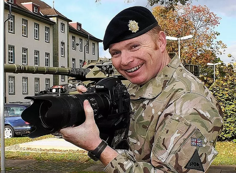 Bei Patrouillen und Einsätzen trägt er zusätzlich zur Fotoausrüstung genau wie die übrigen Soldaten eine Waffe bei sich, um sich im Notfall verteidigen zu können. "Insgesamt musste ich etwa 50 Kilogramm schleppen", sagt der aus Leeds stammende Familienvater. "Ich habe in den sechs Monaten in Afghanistan ganz schön abgenommen."