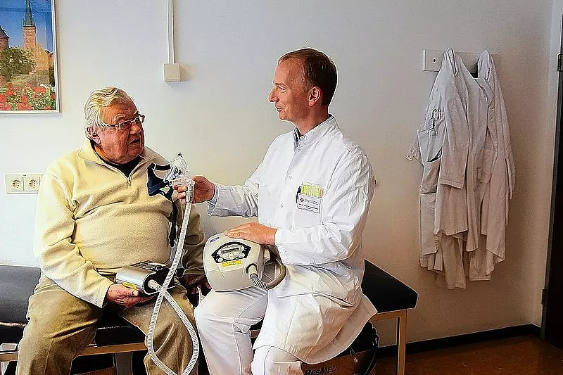 Um so größer nun seine Freude über das neue Gerät: "Absolut lautlos", findet er es, weiß sich mit seiner Gattin einig. Nur die Maske, die er auf Nase und Mund setzen muss, hält er noch für verbesserungsbedürftig: "Die ist zu klobig und fängt an zu flattern, wenn man sie nicht ganz sorgfältig pflegt."