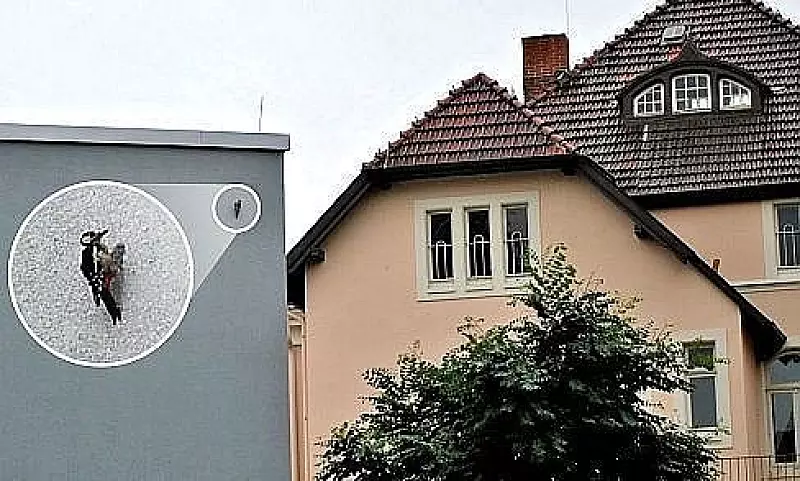 "Das ist ein deutschlandweites Problem", sagt Bernd Jellinghaus, Ornithologe beim Naturschutzbund (NABU) Nordrhein-Westfalen. Mit enormem Kraftaufwand und erheblicher Ausdauer klopfen Buntspechte zwecks Futtersuche und Bruthöhlenbau nicht nur gegen Baumstämme – auch vor Fassaden machen sie nicht halt. Kürzlich musste beispielsweise die Fassade des Amtsgerichts in Bünde dran glauben: Ein Vogel hatte sich in der Wand des Neubaus eine Höhle gebaut.
