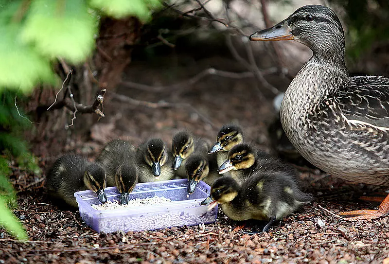 Ein Beamter begleitete die Tiere zu Fuß, sein Kollege sicherte die tierische Kolonne mit dem Streifenwagen ab. Die Feuerwehr rückte schließlich an, fing die Enten mit einem Netz ein und ließ sie wieder zu Wasser.