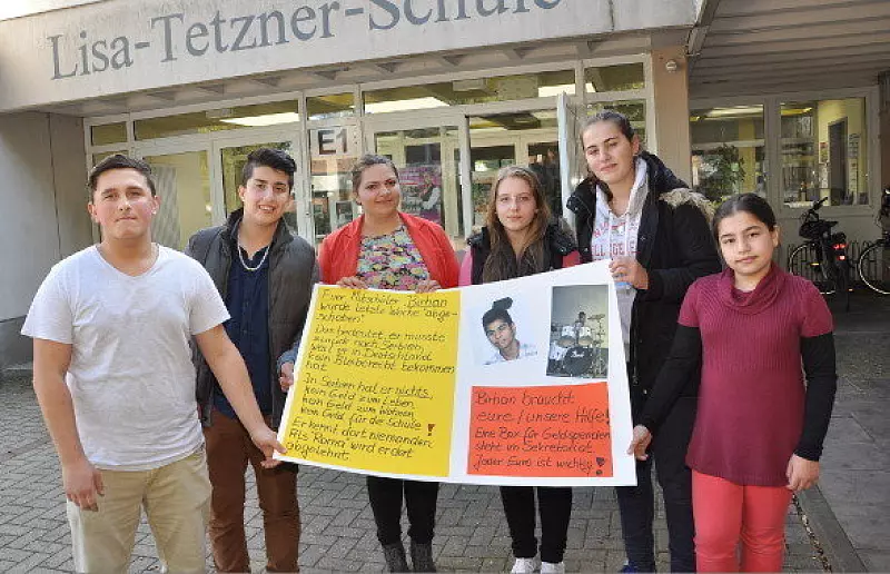 In der Lisa-Tetzner-Schule weisen große Plakate auf die Notsituation von Birhan und seiner Familie hin. Die Schulleitung hat zu Spenden aufgerufen. "Unser Ziel ist die finanzielle Unterstützung", erläutert Ulrike Gärtner.Für die Unterkunft in einer winzigen Wohnung soll Birhans Familie 250 Euro bezahlen. "Die wollen wir zunächst zusammenbekommen." Unterstützung hat bereits eine albanische Frauengruppe zugesagt. Sie wollen eigene Plakate gestalten, sie in und vor der Moschee aushängen und weiteres Geld sammeln.