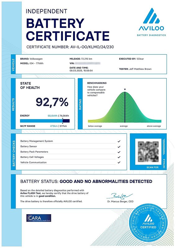 «Speziell bei älteren Fahrzeugen, die sieben bis acht Jahre alt sind, ist ein SoH-Test sinnvoll, denn das ist auch der Zeitpunkt, an dem bei vielen Herstellern die Garantie für die Batterie ausläuft», sagt Matthias Vogt. Ein Check ist also sowohl sinnvoll für den Käufer, um eine eventuell defekte oder angeschlagene Batterie zu erkennen, oder eben auch für Verkäufer, um einen besseren Preis beim Verkauf des E-Autos zu erzielen.