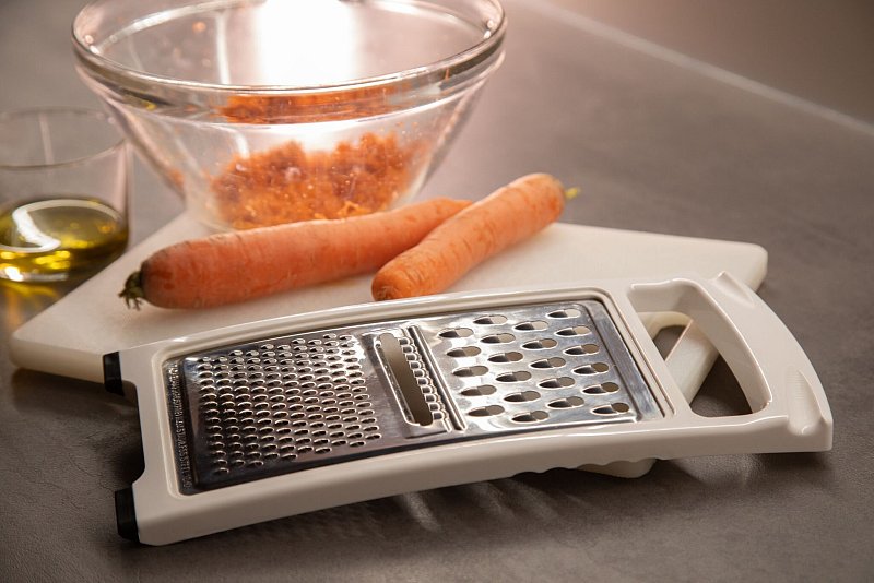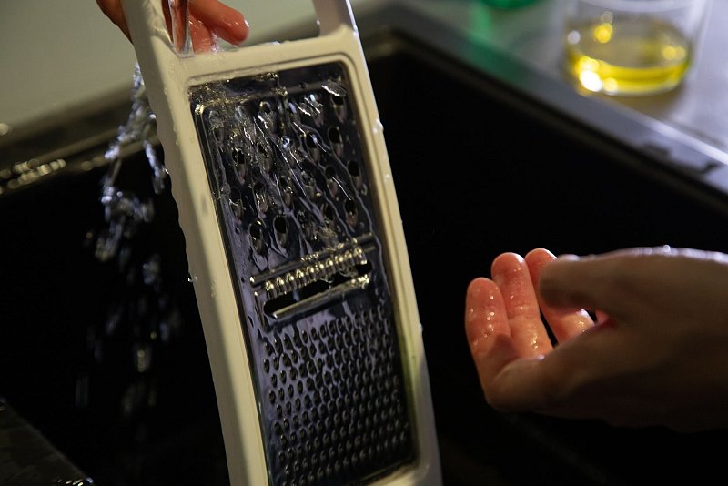 Fazit: Der Hack funktioniert hervorragend. Das Speiseöl entfernt die rötlichen Flecken von der glatten Plastik-Oberfläche einer Küchenreibe restlos - ganz ohne Einwirkzeit oder starkes Schrubben.