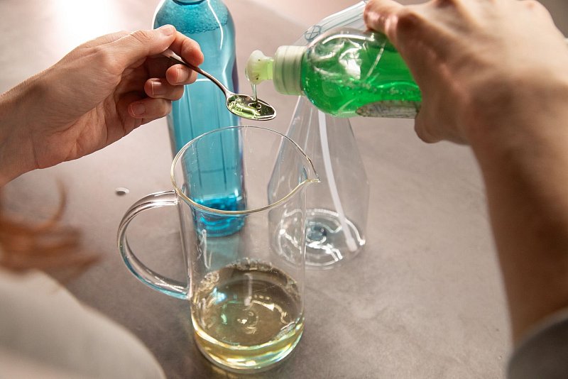 Schritt 1: Einen Teelöffel Essig zu 200 Millilitern Wasser geben. - © Christin Klose/dpa-tmn