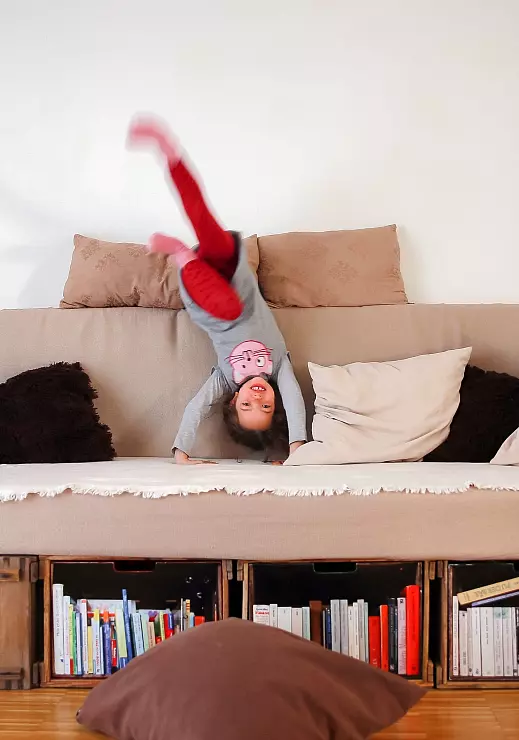 Eine Spielecke signalisiert: «Hier bin ich willkommen», so Schilling. Am einfachsten definiert man sie im Wohnraum mit einem Teppich. «Podeste klingen zwar auch spannend, sind aber Stolperfallen», warnt Angelika Hinz. Und sie nehmen Licht, Raum und Leichtigkeit, lassen den Raum kleiner und beengter wirken. Kinder fühlen sich aber dort am wohlsten, wo es hell ist. Meist in der Nähe bodentiefer Fenster.