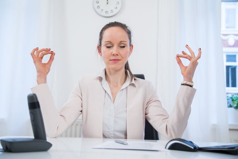 Meist lassen sich kleinere Übungen auch gut in den Berufsalltag integrieren. Zum Beispiel eine Sitz-Meditation. Und das geht so: Beschäftigte nehmen eine aufrechte, bequeme Sitzhaltung ein. Die Füße berühren den Boden, die Augen sind geöffnet oder geschlossen.