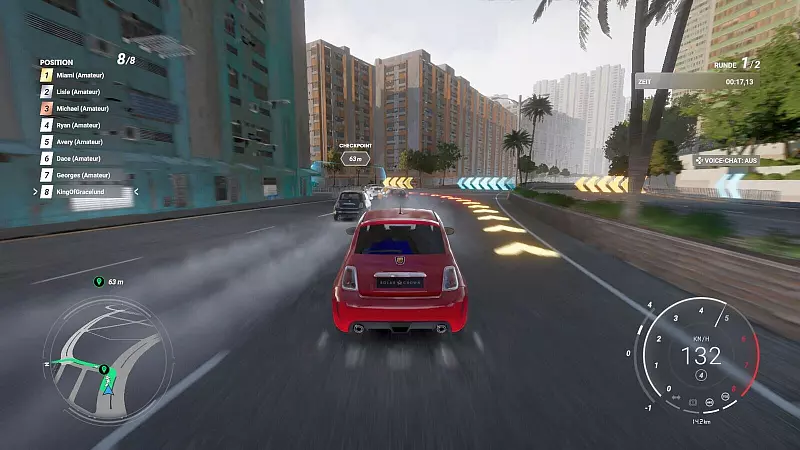 In einem Autorennspiel geht es natürlich um... man mag es kaum glauben: Autorennen. In diesem Fall rasen wir über Hongkong Island, das 1:1 nachgebildet wurde. Über die gesamte Insel sind zahlreiche Solar-Crown-Rennen verteilt, die es zu gewinnen gilt. Mal sind es Rundkurse, mal Sprints oder Querfeldein-Rennen. Die Varianz ist groß und wird nicht so schnell langweilig. Es geht durch enge Straßen, über das Hafengelände oder auf die höchsten Berge und an die schönsten Strände, und das zu unterschiedlichen Tageszeiten und bei herrlichem oder fiesem Wetter.