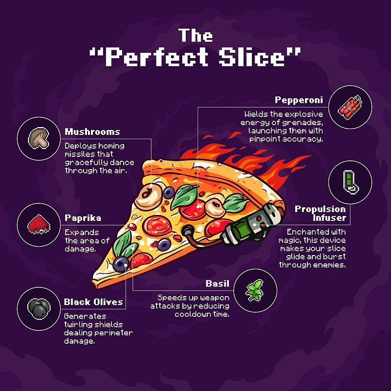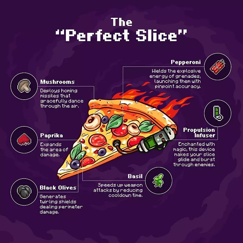 Viele Games haben spannende Protagonisten. Dieser 2D-Shooter im Roguelike-Stil hat aber einen völlig überraschenden Helden: ein Stück Pizza.