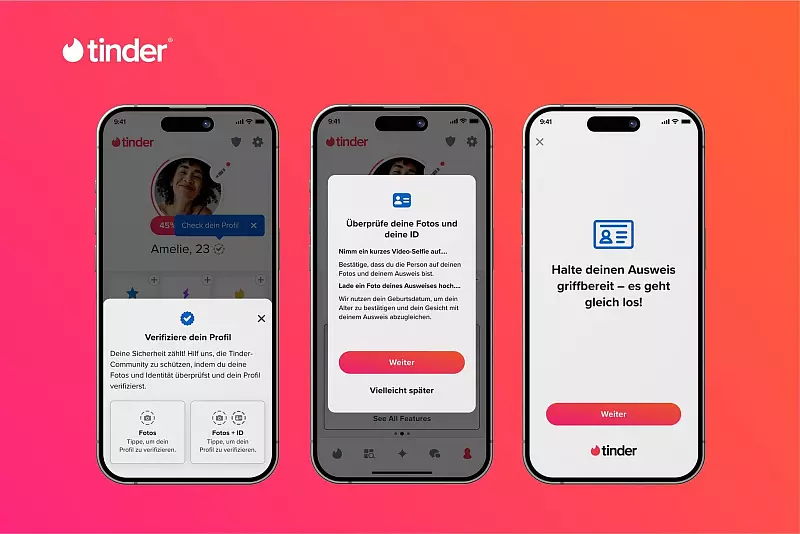 Die neue Funktion soll sowohl die Authentizität von Profilen belegen als auch die Sicherheit beim Tindern verbessern. Auch in Frankreich, Italien, den Niederlanden und Spanien startet die Ausweisverifizierung.