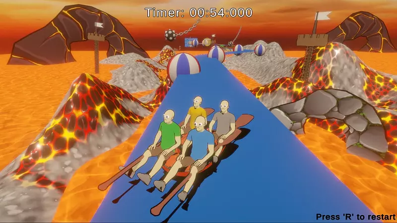 Das benötigt von den Spielenden enorm viel Koordination. Sie müssen sich einig sein, wer wann paddelt, um die Hindernisse zu überwinden. Selbstverständlich passieren dabei enorm viele Fehler. Da die Checkpoints auf der Strecke zunehmend herausfordernd platziert sind, müssen bestimmte Passagen auch immer und immer wieder neu versucht werden, weil schon der kleinste Verpaddler zum Scheitern genügt.