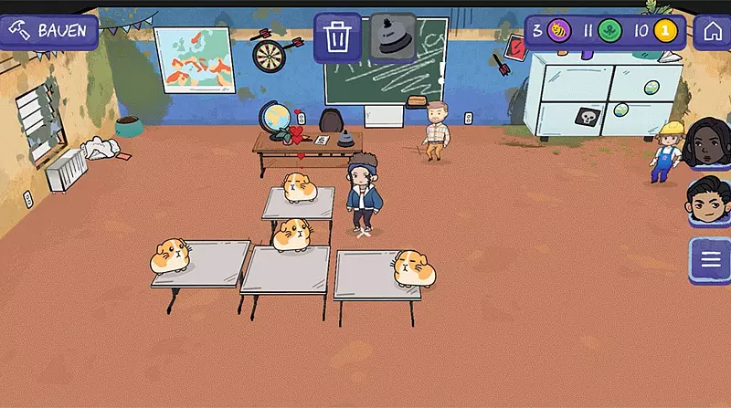 Wer sich das kostenlose Spiel für iOS und Android herunterlädt, muss sich zunächst einen Charakter erstellen. In der Schule beginnt dann eine Art cozy Rollenspiel: Von Lehrer Frank Stimpel bekommt man Aufgaben, die zu einigem Chaos führen - etwa Müll sammeln und entsorgen.