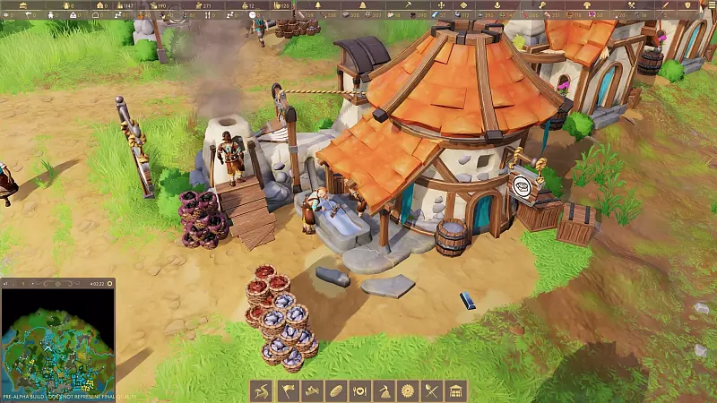 Mit weiteren Rohstoffen lassen sich dann neue Gebäude errichten, die auch wieder zur Erschließung neuer Rohstoffe benötigt werden. Und natürlich setzt sich in den Unterkünften auch der Kreislauf des Lebens zwischen den Bewohnerinnen und Bewohnern fort. Sogar Perspektiven gibt es dann für den Nachwuchs: In einem Haupthaus werden Spezialisierungen und Weiterbildungen angeboten, etwa zum Träger.
