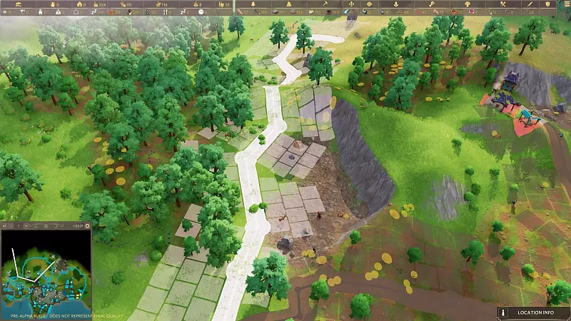 Im Kern ist und bleibt auch «Pioneers of Pagonia» ein Aufbau-Game: Die Spielenden starten mit einer Gruppe von Pionieren, Trägern und nur wenigen Rohstoffen. Es werden erste Unterkünfte errichtet und Rohstofflager, in denen die Bevölkerung Holz und Steine hortet. Auf der kulinarischen Seite sorgt ein Sammler mit Beeren und Champignons für die Grundversorgung mit Nahrungsmitteln.
