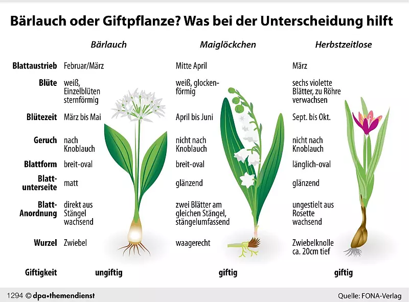 - «Wunderlauch und Bärlauch haben feine, zarte Blätter. Die Herbstzeitlose hat glänzende Blätter, die beim Reiben quietschen.»