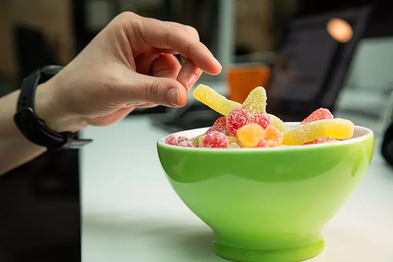 Ob vegan oder nicht: Fruchtgummis sind Süßigkeiten, haben also einiges an Zucker. Laut der Zeitschrift «Öko-Test» (Ausgabe 4/2025) variiert der Zuckergehalt der getesteten sauren veganen Varianten aber stark. Tipp für Verbraucher: Beim Kauf in der Nährwerttabelle nachsehen.