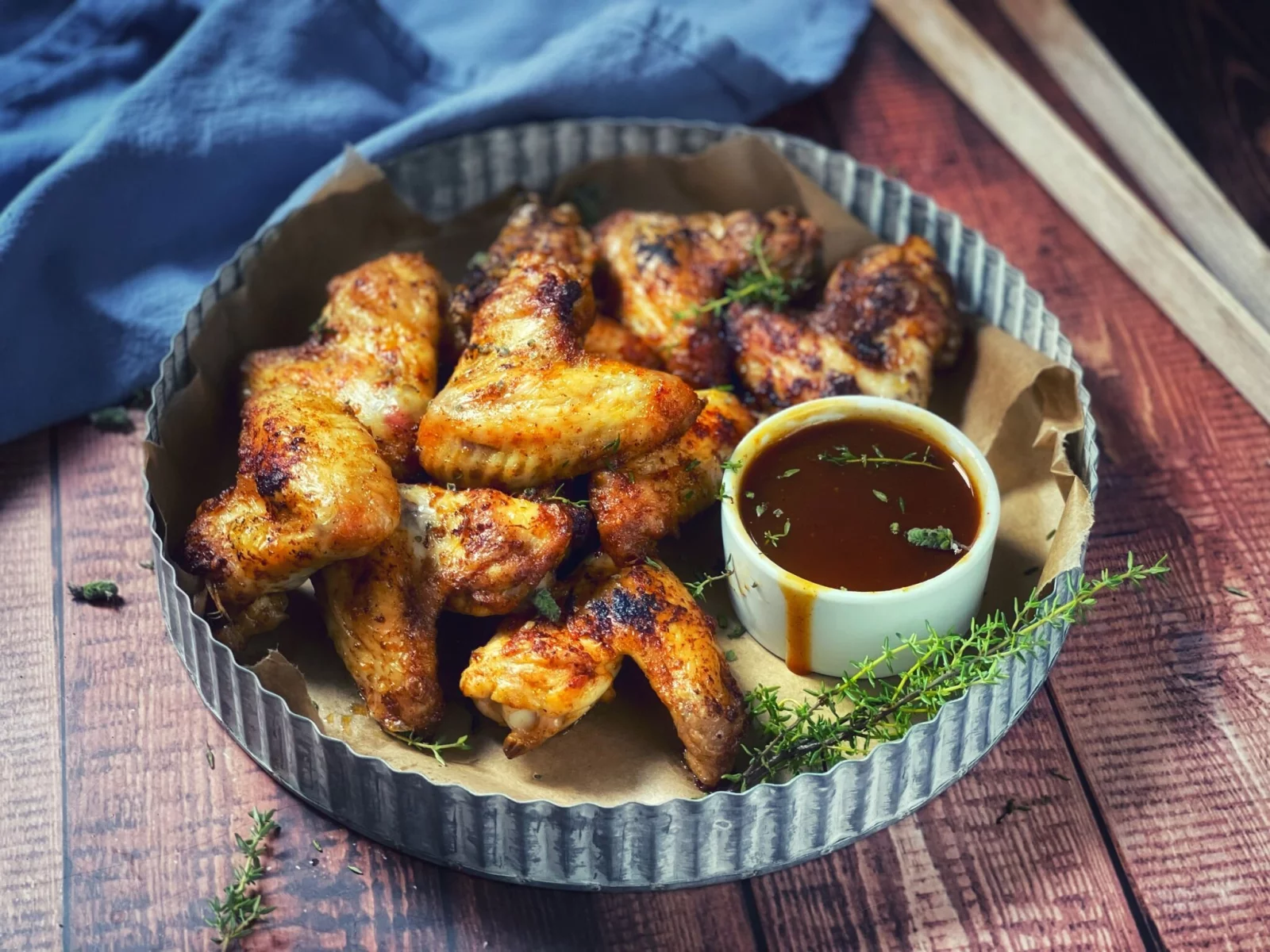 Hier zwei Rezeptbeispiele von Anja Würfl, wo jeweils für 8 Chicken Wings die Zutaten miteinander verrührt werden. Das Grillgut mariniert darin für zwei Stunden im Kühlschrank. Danach auf 180 Grad vorgeheizter, indirekter Hitze etwa 25 Minuten grillen und anschließend kurz rundherum bei direkter Hitze «bis zur gewünschten Röstung anknuspern», so Würfl.