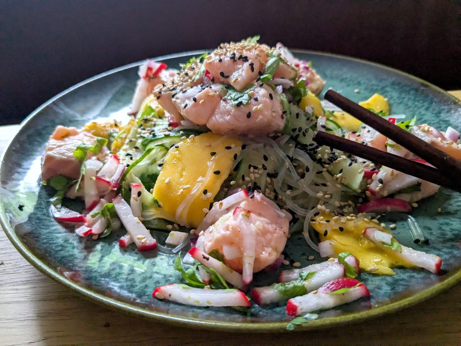 Er ist so schnell gemacht und dabei so köstlich. Das liegt auch an der besonderen Art den Lachs zu garen. Die Säure von Limettensaft denaturiert das Eiweiß des Fisches, wodurch er ähnlich wie beim Kochen gegart wird, ohne tatsächlich Hitze auszusetzen. So bleibt der Fisch frisch und wird so zart, dass er förmlich auf der Zunge zergeht. Dieses Essen hat im Sommer auf jeden Fall Suchtpotential!