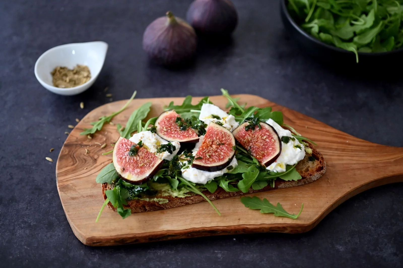 Mit diesem Rezept erfährt das Wort «Butterbrot» eine neue Dimension: Das Brot wird zunächst mit etwas Butter bestrichen und in einer Pfanne knusprig angebraten. Darauf kommt eine kleine Portion cremige Avocado, scharfer Rucola, süße Feige und sahnige Burrata.