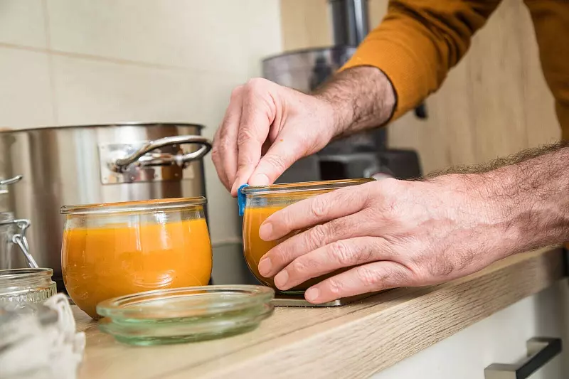 Anja Schwengel-Exner würde zum Einfrieren allerdings keinen Gefrierbeutel verwenden. Weil Kürbispüree doch relativ flüssig ist, könnte es auslaufen. Gefrierdosen seien da praktischer. Aber auch gereinigte Marmeladengläser seien gut geeignet. «Sie sollten aber richtig sauber sein. Um letzte Bakterien zu entfernen, kann man sie mit kochendem Wasser ausgießen», rät die Expertin. Weil das gefrorene Püree beim Gefrieren an Volumen zunimmt, empfiehlt sie zudem, die Gläser nur zu 3/4 zu füllen.