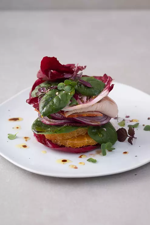 «Ich bin nicht laut – und meine Teller auch nicht», sagt die 33-Jährige und arbeitet gerne mit monochromen Farbwelten – also Farben, die aus einer Grundfarbe stammen. Dazu sollten die Gerichte, bei der das Produkt im Mittelpunkt steht, so strukturiert werden: aufgeräumt, aber elegant, detailverliebt, aber trotzdem übersichtlich und klar strukturiert.