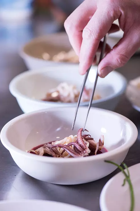 Dennoch sei Klarheit absolut wichtig: «Ich zeige, welche Zutaten in dem Gericht sind. Bei einem Eintopf zum Beispiel setze ich die einzelnen Bestandteile wie Möhrenwürfel als "zufällige" Akzente auf die Oberfläche. Man soll sich so schnell wie möglich die Zutaten erschließen, gleichzeitig soll es gut aussehen.»