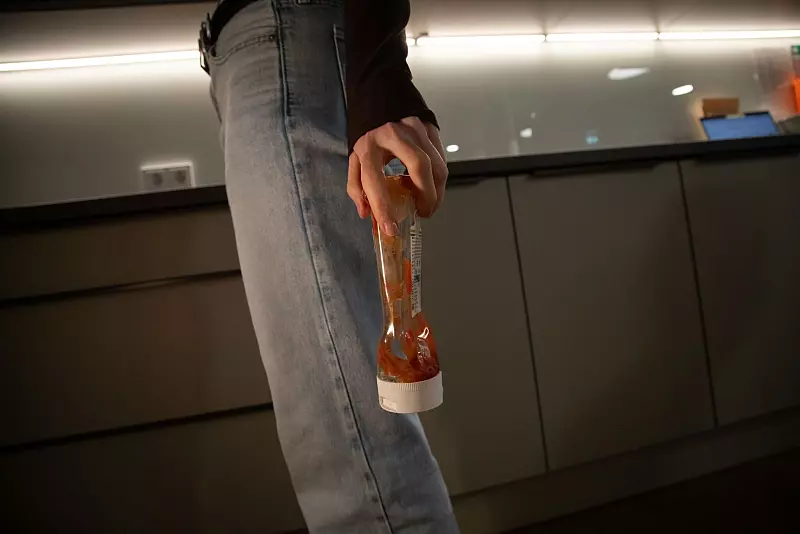 Fazit: Nach etwa zehn «Runden» ist ein Großteil des Ketchups in Richtung Flaschenöffnung gerutscht. Ein paar hartnäckige Reste bleiben allerdings trotzdem zurück. Dann einfach einen kleinen Schluck Wasser in die Flasche geben, verschließen und gut schütteln - dieser Rest lässt sich zum Beispiel noch für eine Soße nutzen.
