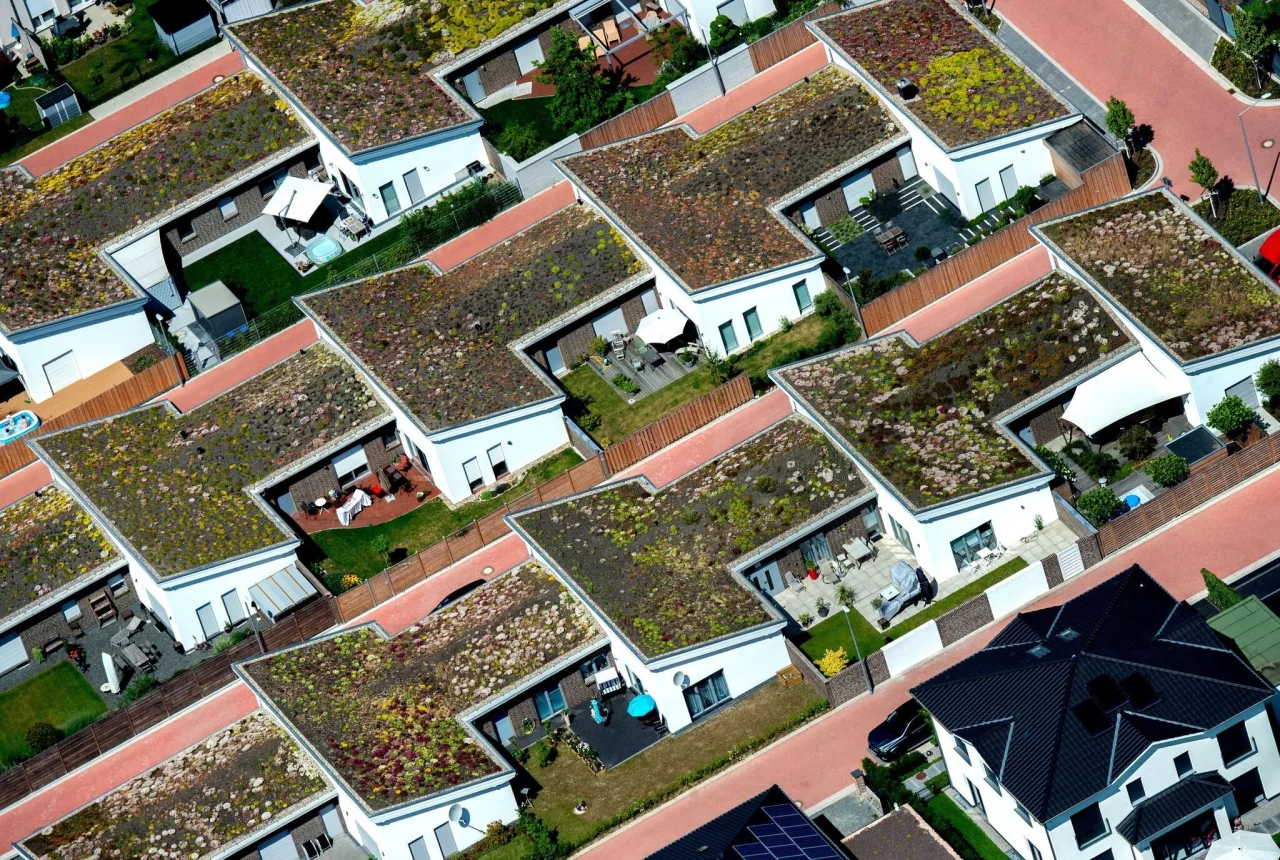 Grüne Dächer sehen nicht nur gut aus, sie sind auch natürliche Klimaanlagen. Denn sie binden Feuchtigkeit, die später langsam verdunstet und die Umgebung kühlt. Wer sich Grün aufs Dach holt, tut also auch etwas fürs Klima in seiner Umgebung.