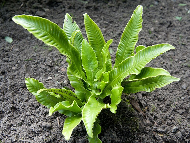 - Hirschzungenfarn ist ein immergrüner Farn. Seine Blätter sind nicht federförmig, sondern lanzenförmig. Er mag kalkhaltigen (also nicht zu sauren) Boden.