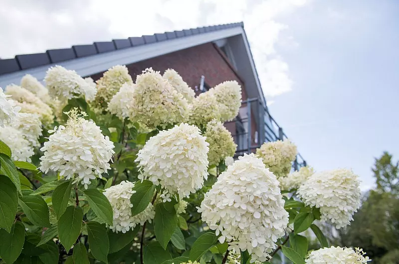 Im Vergleich zu den eher im Halbschatten wachsenden Bauern-Hortensien lieben die Rispen-Hortensien die Sonne. Sie sind in Bezug auf den Schnitt recht unkompliziert. Man kann sie im Frühling komplett zurückschneiden. Die Blütenbildung wird dadurch nicht beeinträchtigt. Allerdings ist der Wuchs von herkömmlichen Sorten häufig sehr ausladend. Züchter bemühen sich daher um die Standfestigkeit.