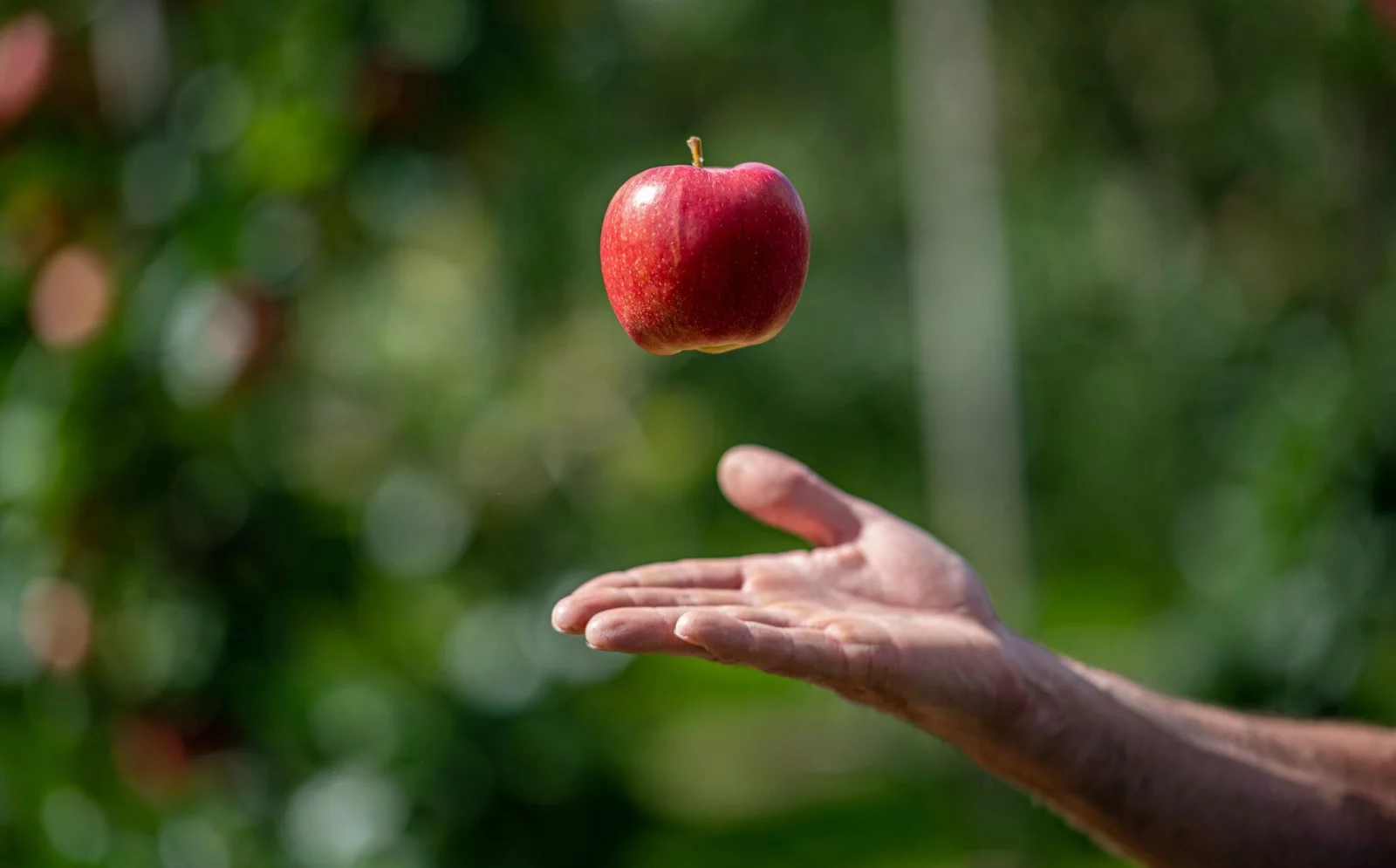 Anhand der Färbung der Schale oder der Kerne lässt sich nur bedingt ablesen, ob Äpfel wirklich reif sind. Stattdessen kann man es mit der sogenannten Kipp-Probe herausfinden. Und so geht's: den Apfel am Zweig um bis zu 90 Grad nach oben biegen. Wenn sich die Frucht mitsamt Stiel einfach vom Zweig löst, ist sie reif. Bleibt der Stiel stattdessen hängen, ist es noch zu früh für die Ernte.