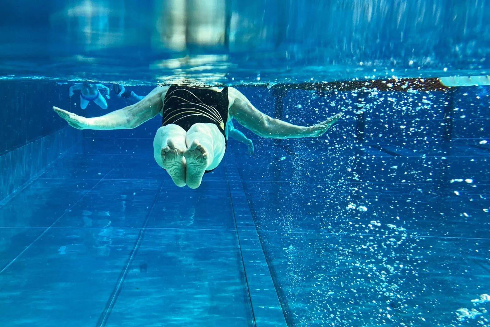 - Beim eigenen Schwimmstil nachschärfen: Liegt man beim Schwimmen möglichst horizontal im Wasser, wird weniger Blut aus den Beinen Richtung Brustraum gedrückt.
