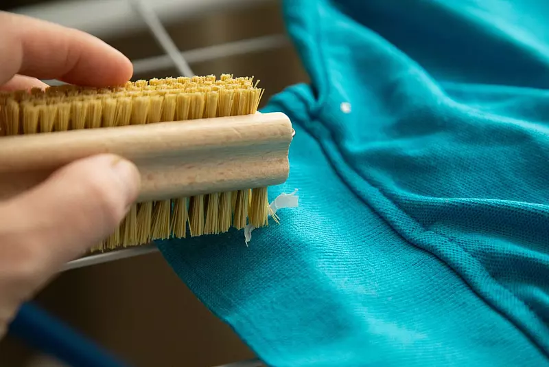 Und so geht's: Das Kleidungsstück zunächst trocknen lassen. Anschließend mit einer Nagelbürste vorsichtig über den Stoff fahren und die Taschentuchreste so wegbürsten.