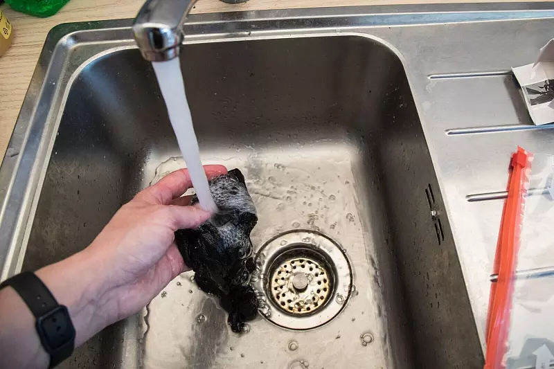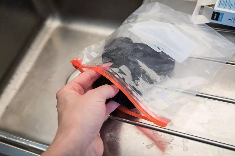 Und so geht's: Die Strumpfhose vor dem ersten Tragen unter kaltem Wasser abspülen. Danach leicht auswringen, sodass sie noch feucht ist, aber nicht mehr tropft. Anschließend kommt sie in einem Plastikbeutel ins Gefrierfach. Nach 24 Stunden herausnehmen, unter warmem Wasser auftauen und trocknen lassen.